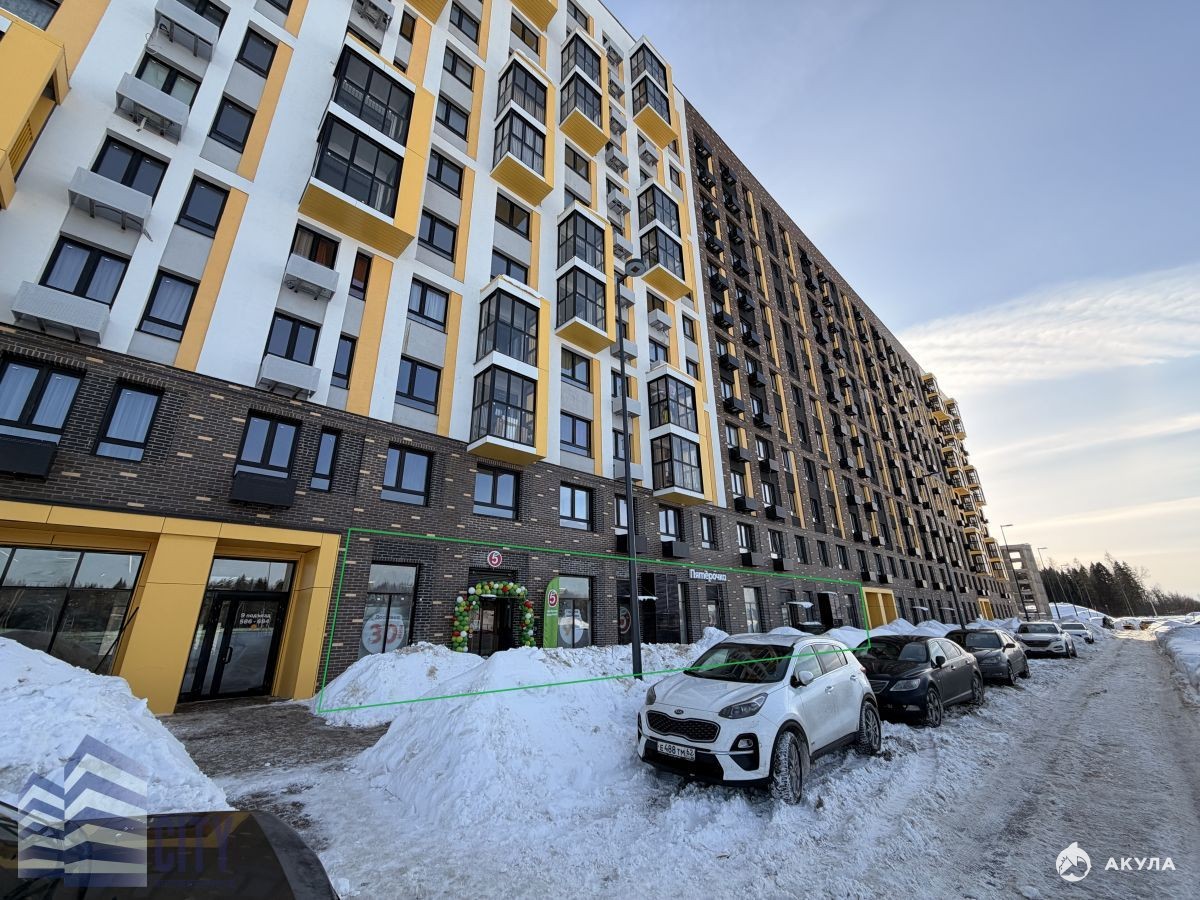 В продаже нежилое помещение, площадью 450 кв.м., расположенное в новом ЖК Пятницкие Луга. Подписан договор аренды с продуктовой сетью "Пятерочка".