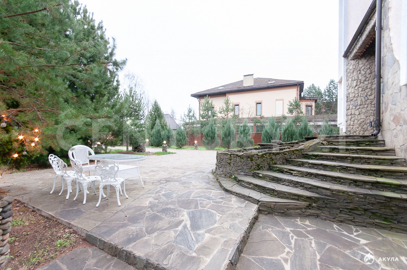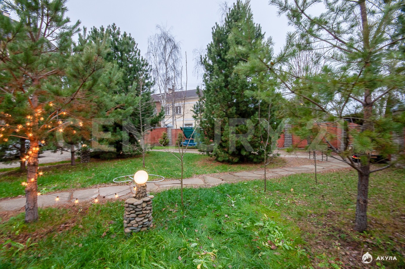 На участке выполнен ландшафтный дизайн, высажены деревья редких пород, предусмотрена наружная подсветка по периметру дома и участка.