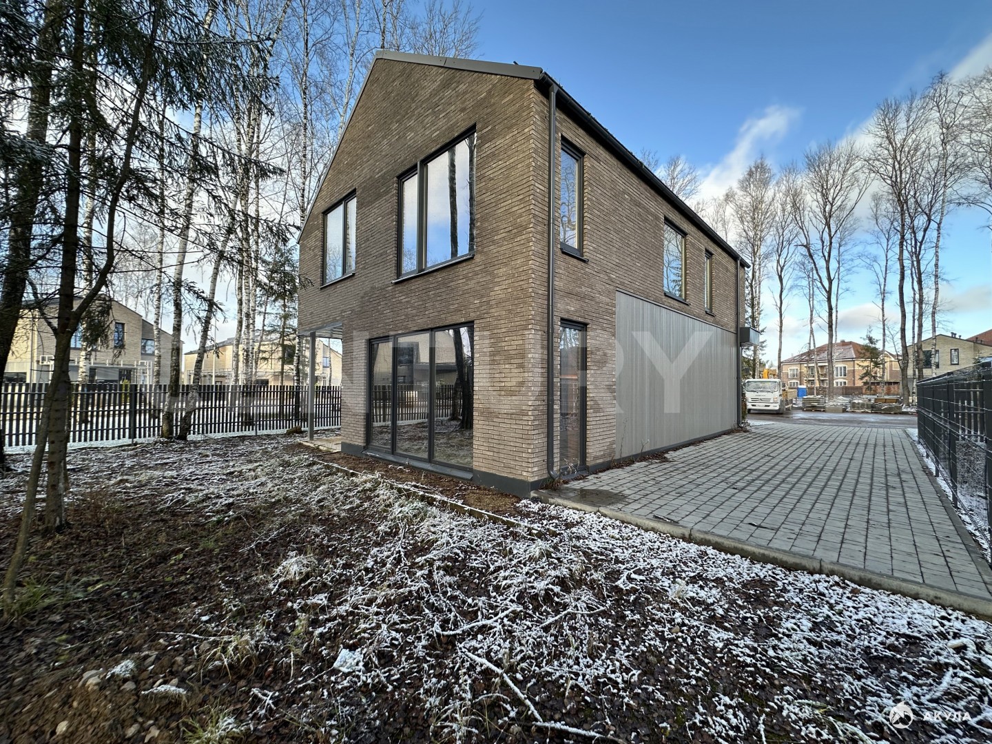 Скандинавский минимализм в архитектуре, сдержанный и элегантный, и одновременно динамичный за счёт ассиметрии. Фасады выполнены из благородного клинкерного кирпича с элементами дерева; большая площадь остекления, ориентированная на приватный задний двор; высокие потолки.