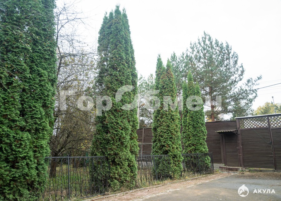 На участке: сосны, ели, вишня, слива, яблони, груша, виноград, смородина красная и черная, малина.