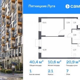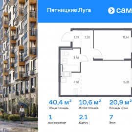 Строим кварталы для жизни с заботой о будущем. Предлагается 1-комнатная квартира комфорт-класса 40, 38 кв.м в корпусе 2.1 на 7 этаже, в ЖК «Пятницкие Луга» Квартира без отделки. Доступность опции «отделка» и возможность комплектации мебелью и декором уточняйте у...