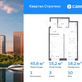 Строим кварталы для жизни с заботой о будущем. Предлагается 1-комнатная квартира комфорт-класса 45, 62 кв.м в корпусе 3 на 10 этаже, в ЖК «Квартал Строгино» Квартира без отделки. Доступность опции «отделка» и возможность комплектации мебелью и декором уточняйте у...