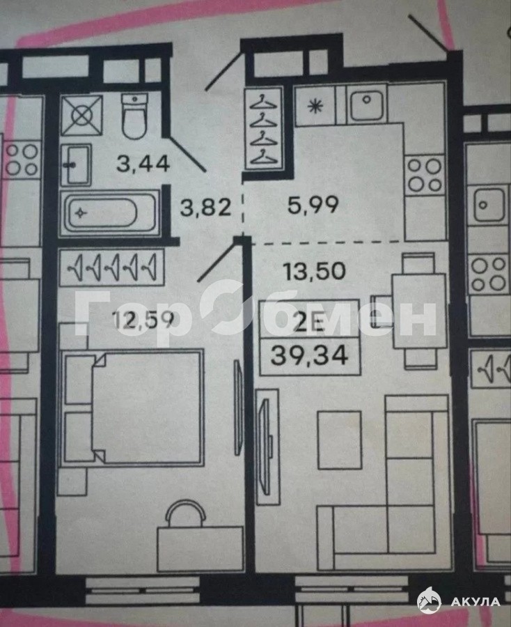 Общая площадь квартиры: 39.4 кв.м., 18/33 этаж.