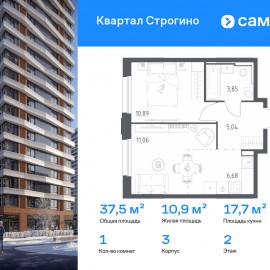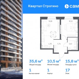 Строим кварталы для жизни с заботой о будущем. Предлагается 1-комнатная квартира комфорт-класса 35, 64 кв.м в корпусе 1 на 17 этаже, в ЖК «Квартал Строгино» Квартира с чистовой отделкой. Доступность дополнительных опций уточняйте у застройщика. Приобрести квартиру возможно по...