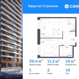 Строим кварталы для жизни с заботой о будущем. Предлагается 1-комнатная квартира комфорт-класса 38, 39 кв.м в корпусе 2 на 19 этаже, в ЖК «Квартал Строгино» Квартира с чистовой отделкой. Доступность дополнительных опций уточняйте у застройщика. Приобрести квартиру возможно по...