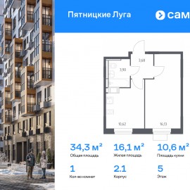 Строим кварталы для жизни с заботой о будущем. Предлагается 1-комнатная квартира комфорт-класса 34, 33 кв.м в корпусе 2.1 на 5 этаже, в ЖК «Пятницкие Луга» Квартира без отделки. Доступность опции «отделка» и возможность комплектации мебелью и декором уточняйте у...