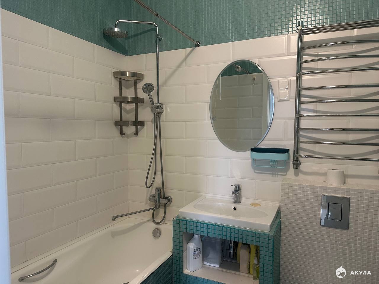 Ванная комната с возможностью замены ванны на душевую плитка выложена и под ванной.