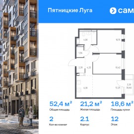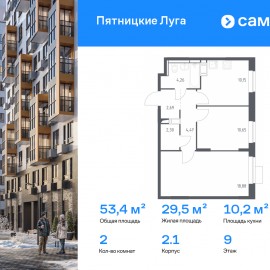 Строим кварталы для жизни с заботой о будущем. Предлагается 2-комнатная квартира комфорт-класса 53, 4 кв.м в корпусе 2.1 на 9 этаже, в ЖК «Пятницкие Луга» Квартира без отделки. Доступность опции «отделка» и возможность комплектации мебелью и декором уточняйте у...