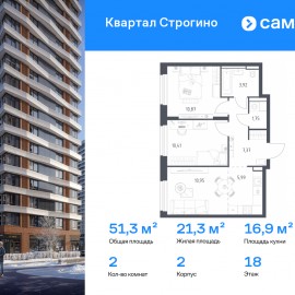 Строим кварталы для жизни с заботой о будущем. Предлагается 2-комнатная квартира комфорт-класса 51, 26 кв.м в корпусе 2 на 18 этаже, в ЖК «Квартал Строгино» Квартира без отделки. Доступность опции «отделка» и возможность комплектации мебелью и декором уточняйте у...