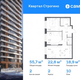 Строим кварталы для жизни с заботой о будущем. Предлагается 2-комнатная квартира комфорт-класса 55, 68 кв.м в корпусе 2 на 10 этаже, в ЖК «Квартал Строгино» Квартира с чистовой отделкой. Доступность дополнительных опций уточняйте у застройщика. Приобрести квартиру возможно по...