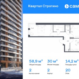 Строим кварталы для жизни с заботой о будущем. Предлагается 2-комнатная квартира комфорт-класса 58, 85 кв.м в корпусе 2 на 20 этаже, в ЖК «Квартал Строгино» Квартира без отделки. Доступность опции «отделка» и возможность комплектации мебелью и декором уточняйте у...