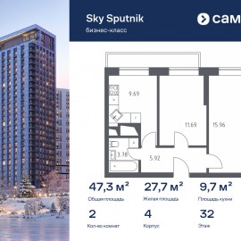 Строим кварталы для жизни с заботой о будущем. Предлагаются 2-комнатные апартаменты бизнес-класса 47, 3 кв.м в корпусе 4 на 32 этаже, в Sky Sputnik Апартаменты с чистовой отделкой. Доступность дополнительных опций уточняйте у застройщика. Прописка не предусмотрена в рамках...