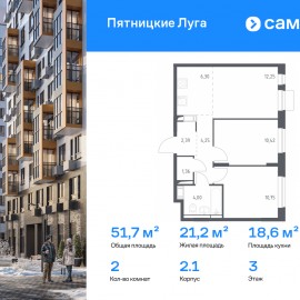 Строим кварталы для жизни с заботой о будущем. Предлагается 2-комнатная квартира комфорт-класса 51, 72 кв.м в корпусе 2.1 на 3 этаже, в ЖК «Пятницкие Луга» Квартира с чистовой отделкой. Доступность дополнительных опций уточняйте у застройщика. Приобрести квартиру возможно по...