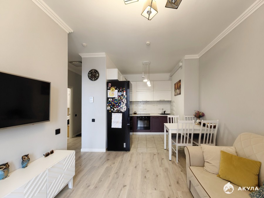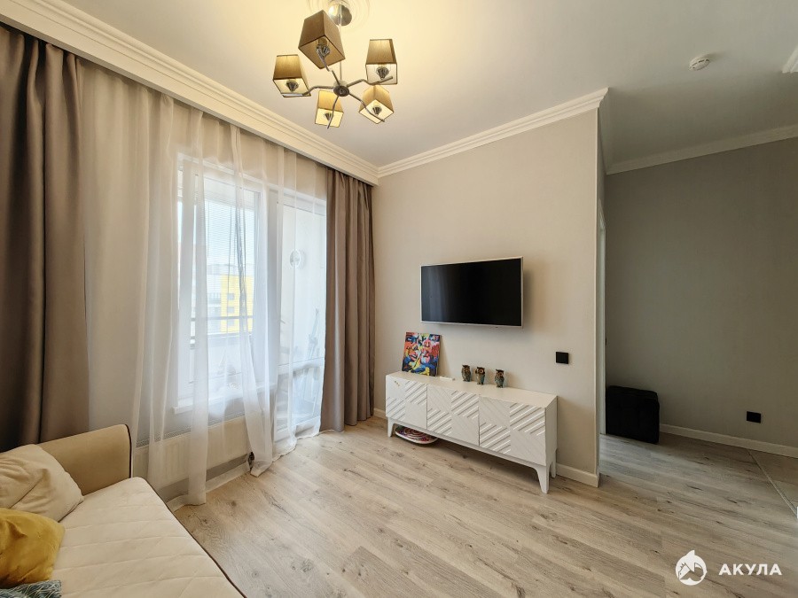 Удобная планировка включает в себя большую кухню-гостиную общей площадью 16, 2 м2, спальню 12, 5 м2, совмещенный с/у 3, 9 м2, холл 5, 3 м2 и лоджию 2, 8 м2. Хорошие видовые характеристики, окна на северо-восток.