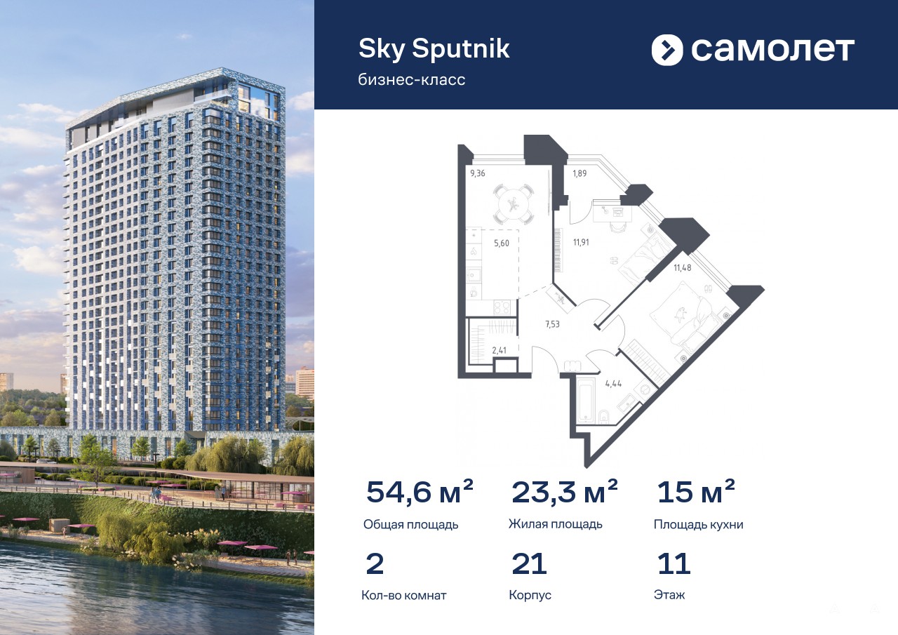 Строим кварталы для жизни с заботой о будущем. Предлагаются 2-комнатные апартаменты бизнес-класса 54, 62 кв.м в корпусе 21 на 11 этаже, в Sky Sputnik
