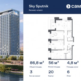 Строим кварталы для жизни с заботой о будущем. Предлагаются 3-комнатные апартаменты бизнес-класса 82, 6 кв.м в корпусе 12 на 6 этаже, в Sky Sputnik Апартаменты с чистовой отделкой. Доступность дополнительных опций уточняйте у застройщика. Прописка не предусмотрена в рамках...