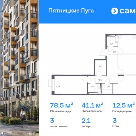 Строим кварталы для жизни с заботой о будущем. Предлагается 3-комнатная квартира комфорт-класса 78, 49 кв.м в корпусе 2.1 на 3 этаже, в ЖК «Пятницкие Луга» Квартира без отделки. Доступность опции «отделка» и возможность комплектации мебелью и декором уточняйте у...