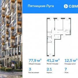 Строим кварталы для жизни с заботой о будущем. Предлагается 3-комнатная квартира комфорт-класса 77, 88 кв.м в корпусе 2.1 на 12 этаже, в ЖК «Пятницкие Луга» Квартира с чистовой отделкой. Доступность дополнительных опций уточняйте у застройщика. Приобрести квартиру возможно по...