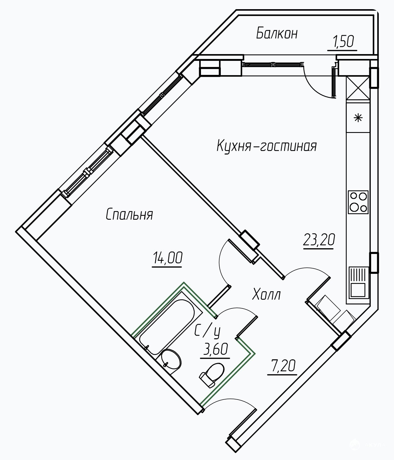 - Площадь кухни