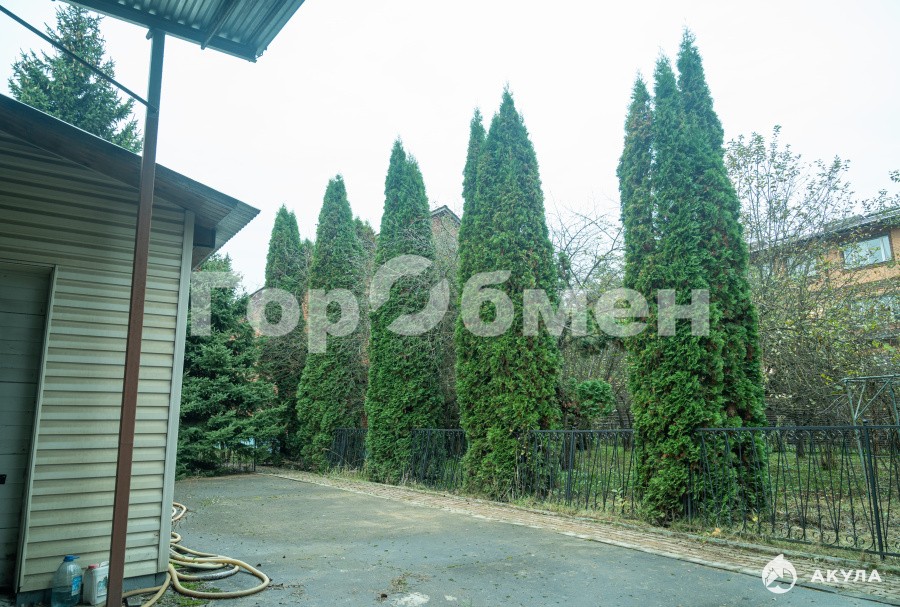 На территории: закрытый отапливаемый гараж с открытой парковкой на 2 машиноместа; гостевой домик 30 кв.м., каркасный из деревянного бруса, кровля - оцинкованный гофролист ( комната, сауна, кухня, сан.узел).