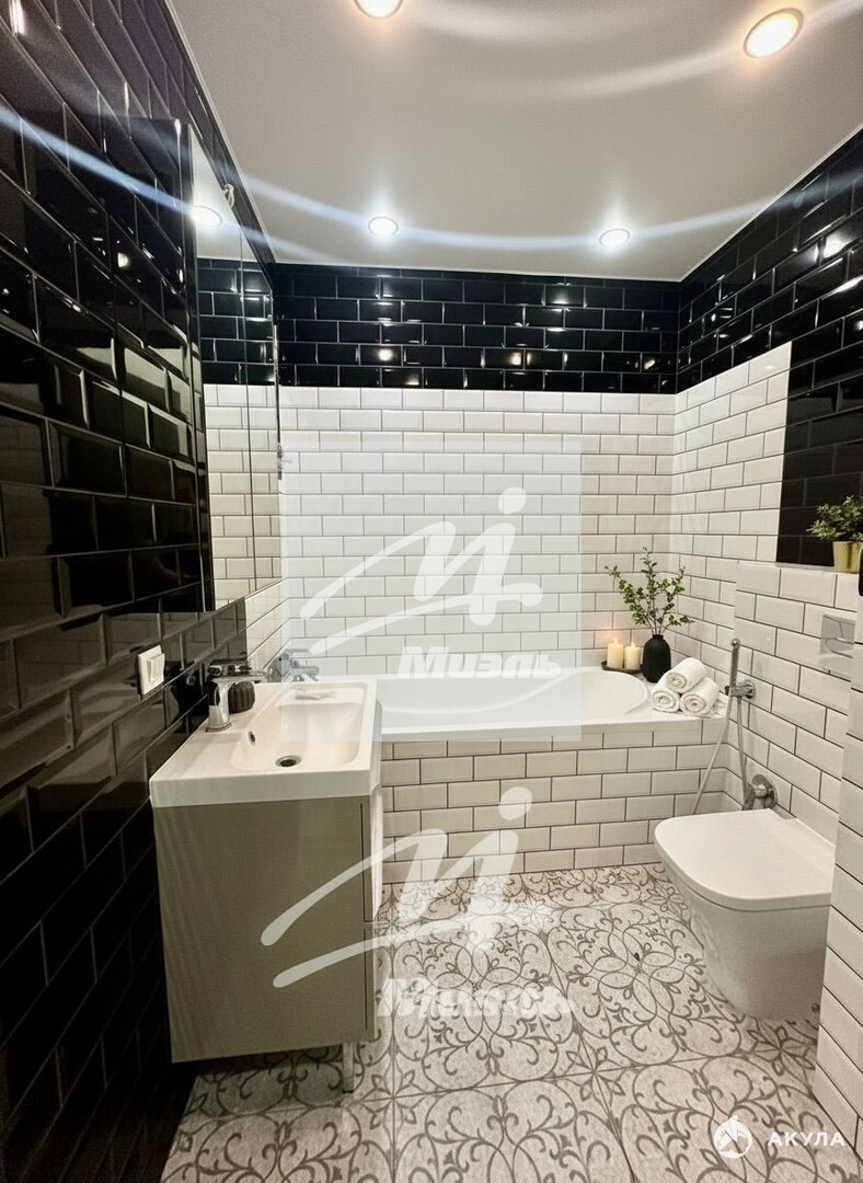 Самое удобное зонирование квартиры: кухня + гостиная с диваном и большим телевизором, отдельная спальная комната. Отдельный хозяйственный блок со стиральной машиной. И ПОЛНОЦЕННАЯ красивая ванная комната с большой ванной.